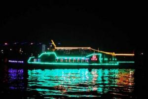 夜游三亞灣:乘坐豪華游艇鳳凰之星號游船游覽三亞灣夜景,夜觀“椰夢長廊”,在徐徐涼風中充分領略三亞美麗夜景,船上提供各項免費項目:啤酒、卡拉OK、演藝等;另有各項自費項目可供選擇:如各類小吃等。